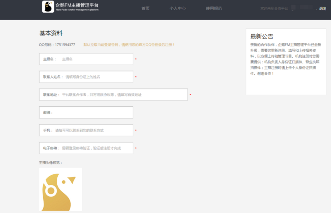 企鹅FM是一款网络电台软件,你可以收听小品、相声、小说等节目,同时你也可以申请注册成为电台主播哦。下面是注册申请企鹅FM电台主播的具体流程介绍,有需要的小伙伴可以了解。