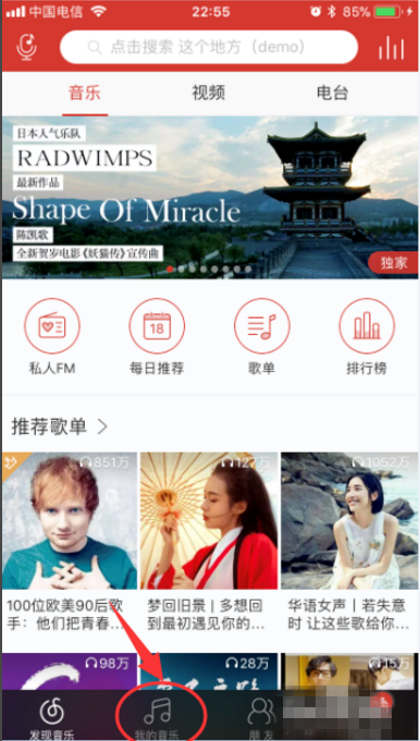 1、打开手机网易云音乐,进入页面,点击“朋友”,