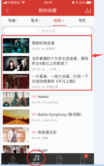 如何查看收藏的视频和MV?