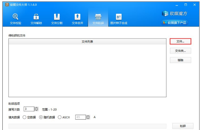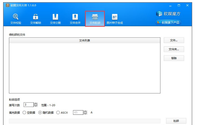 以上内容就是用软媒魔方彻底进行文件粉碎的操作过程介绍,用户在粉碎文件时不要勾选“空数据”填充,要么使用随机数据,要么使用ASCII数据填充5遍以上,才能保证该文件不能被恢复。