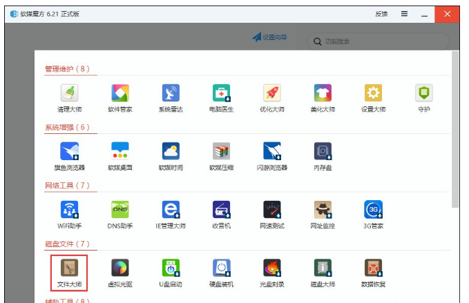 2、在磁盘文件栏目下,打开文件大师;