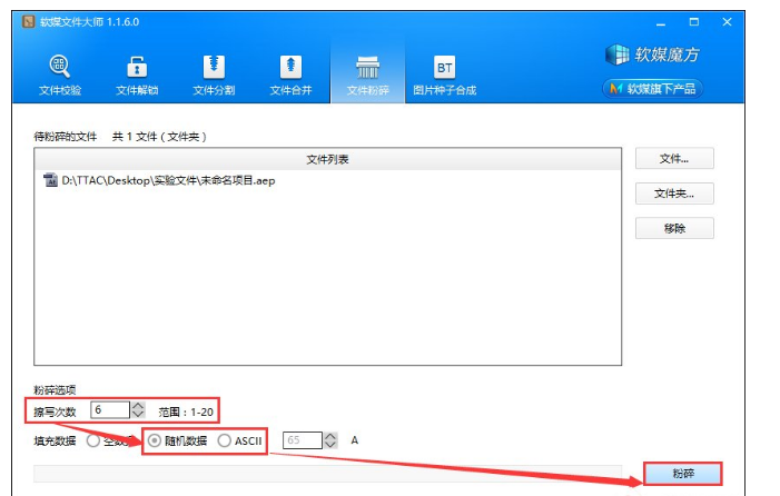 6、这时,我们可以调整一下擦写次数,然后点击粉碎按钮;