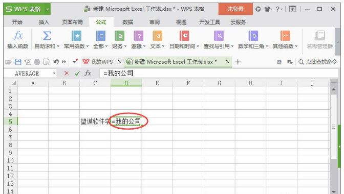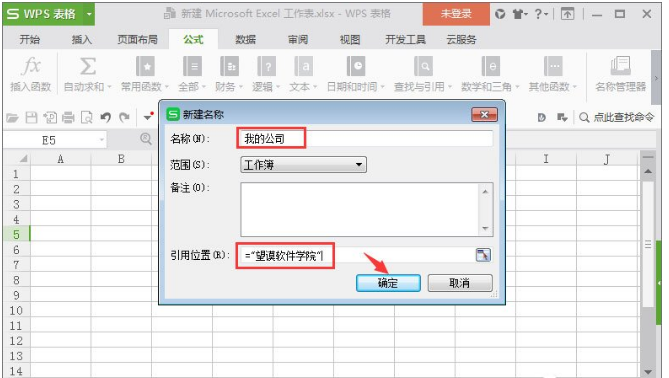 3、在里面输入我们使用的简单代码,比如:我的公司,下面引用输入:=“望谟软件学院”,这里的符号要用英文的记住。