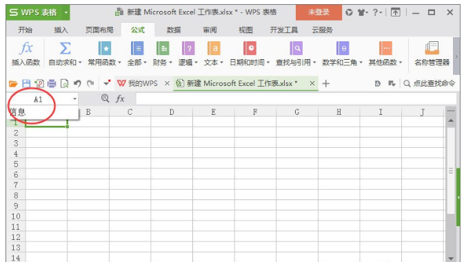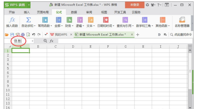 5、我们也可以快速的定位某一个工作表,在一个工作表中输入:信息(随意输入)回车。这个时候我们使用快捷框;