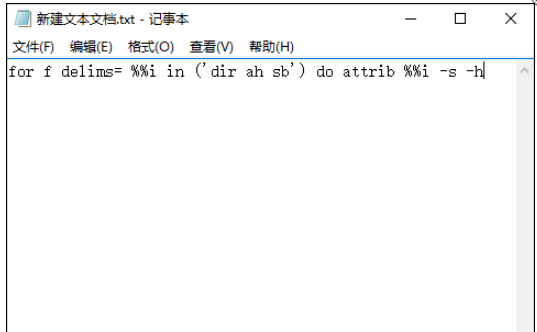 for /f \"delims=\" %%i in (\'dir /ah /s/b\') do attrib \"%%i\" -s -h