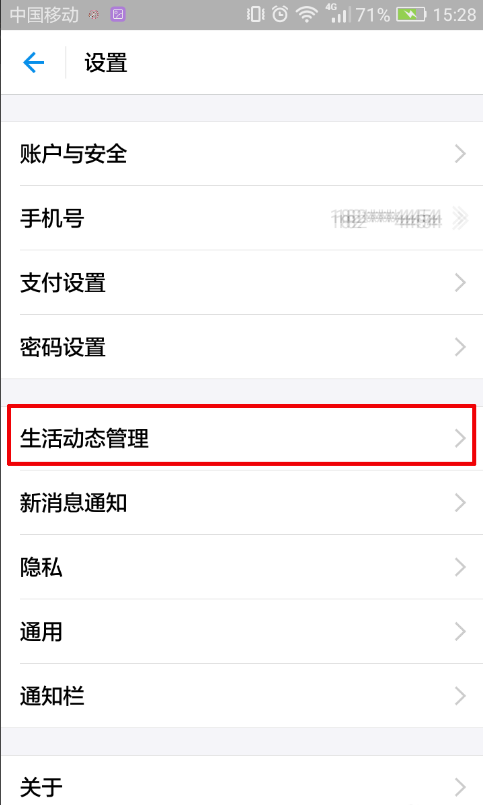 3、然后点击“生活动态通知”。