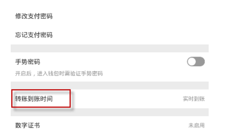 4、点击进入【转账到账时间】功能设置;