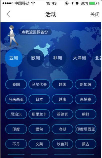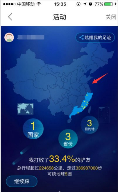 5、踩完国家,可以在该国家直接点选去过的省份;