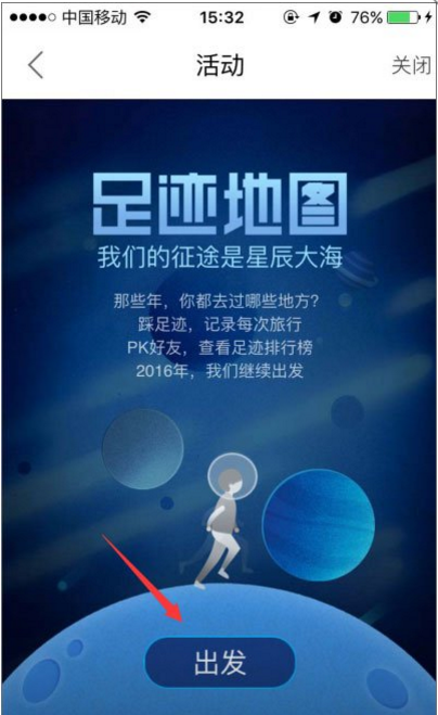 3、然后就跳转到了足迹地图页面,我们点击“出发”;