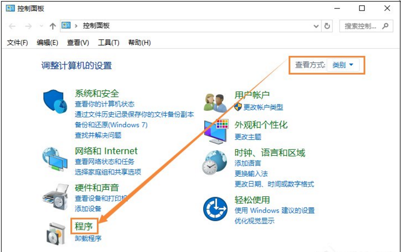 2、查看方式切换为“类别”,再点击“程序”;