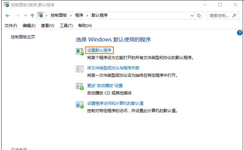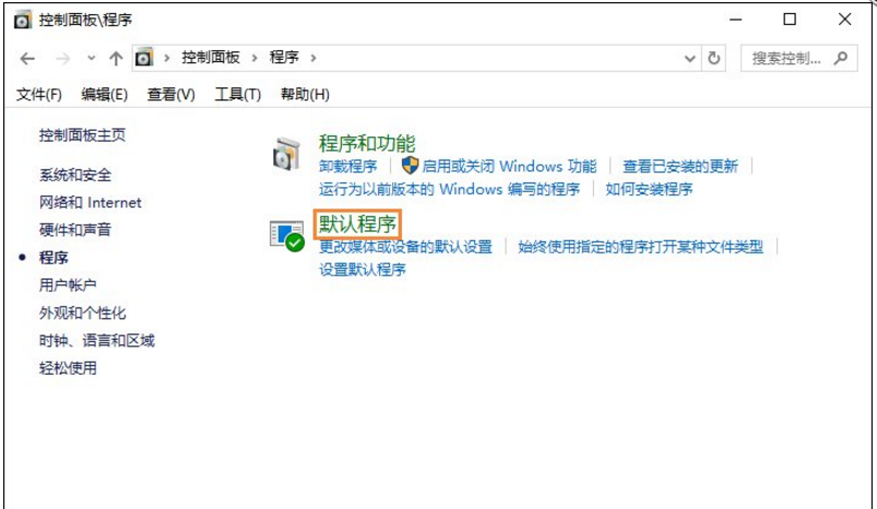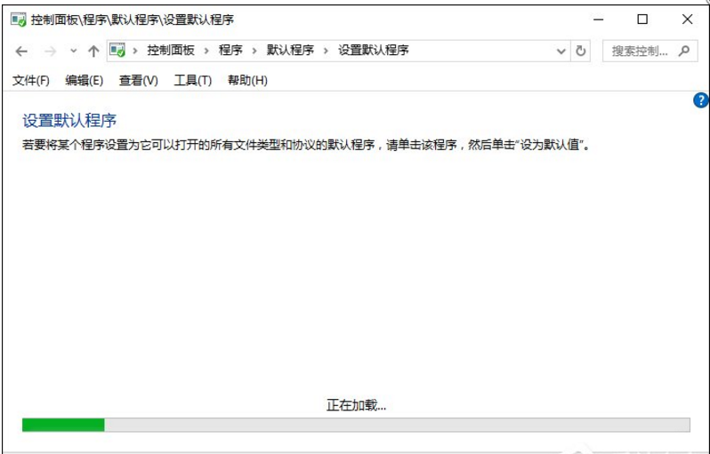 3、在右侧界面中找到并打开“默认程序”,再点击“设置默认程序”,等待加载;