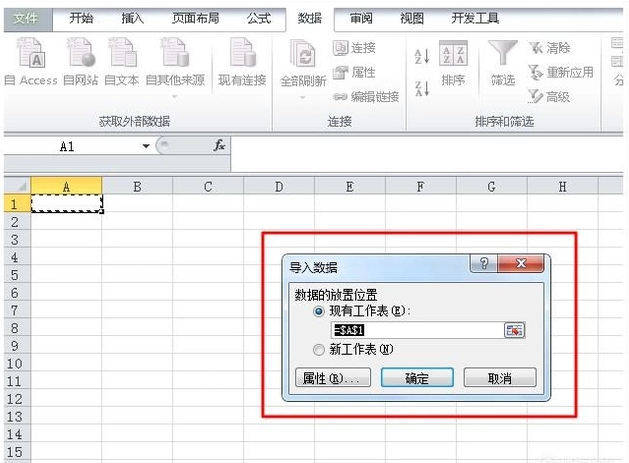 6、弹出“导入数据”对话框后,选择数据的放置位置,你可以在“现有工作表”里指定数据存放的初始位置,也可以选择放置在“新工作表”。选择完毕后,点确定退出。
