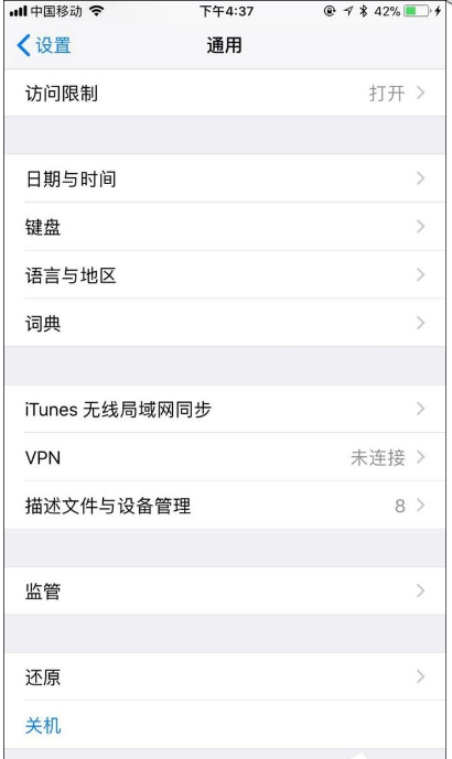 3、接着点击“描述文件与设备管理”,如下图所示。