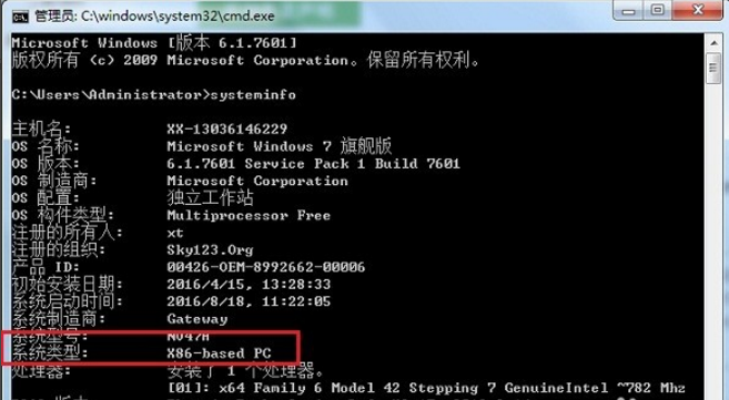 3、按回车键,就可以看到自己的电脑是多少位的操作系统,如下图所示:
