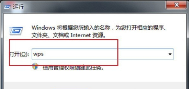 2、在运行里面输入“wps”,点击确定,