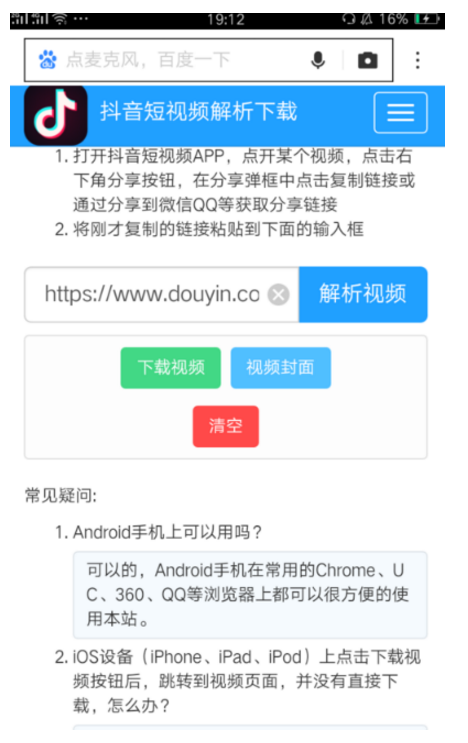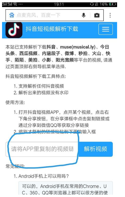 3、打开浏览器,在浏览器中打开在线抖音短视频视频解析,再输入栏中粘贴刚刚复制的链接地址,再点击解析视频,