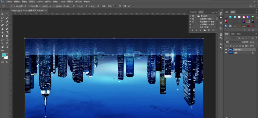 3、用快捷键ctrl+t选定图层,点击右键,选择翻转180度,得到下面的图片。