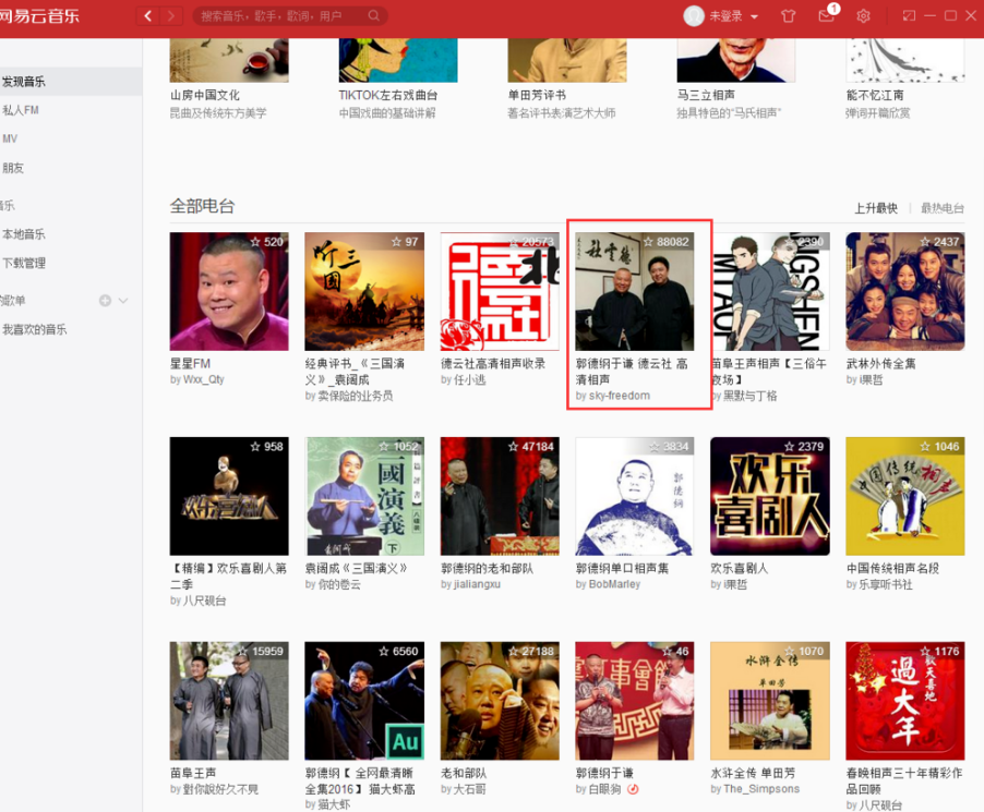 如果你只在喜马拉雅FM、企鹅FM等电台软件上听相声,现在不妨试试网易云音乐哦。