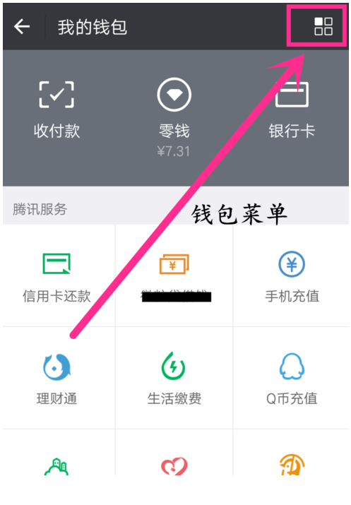 2、然后在我的钱包页面,点击进入右上角“钱包菜单”,进入支付中心,如图所示,