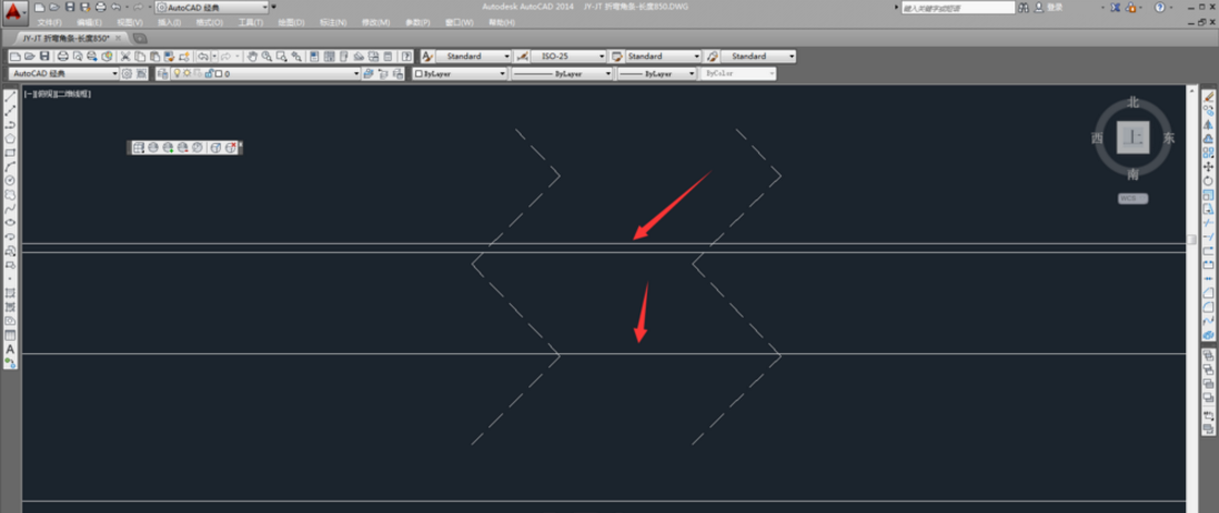 打开AutoCAD软件,如图所示,我们想将虚线和实线相交的线条删除掉。