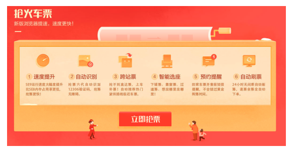 除了跨站抢票,360安全浏览器抢票专版还会不停歇地为用户刷票,只要检测到余票、退票、遗漏票等,360安全浏览器会即刻提醒用户购买,大大提升车票“捡漏”概率。