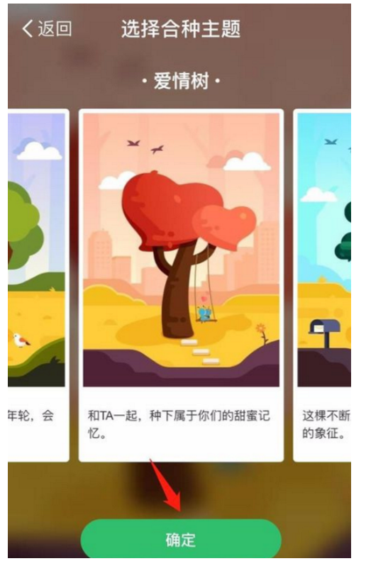 3、选择合种的主题,例如我们点击选择和爱人一起合种一颗爱情树,