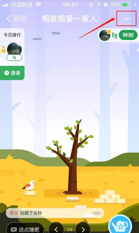 2、在合种树界面的右上角,我们可以看到横着的三个点状的图标,点击就可以查看相应的功能选项。