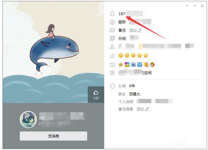 6、别人查看你资料卡的显示,没错,已经变成手机号了。