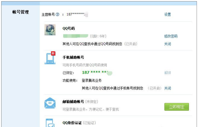 5、这时你可以看到主显账号已经变成手机号码了。