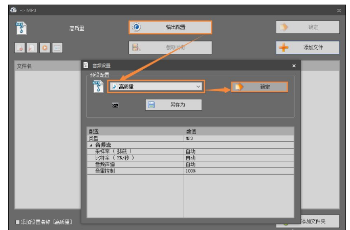 2、单击选择“输出配置”,然后选择适当的配置后,单击“确定”;