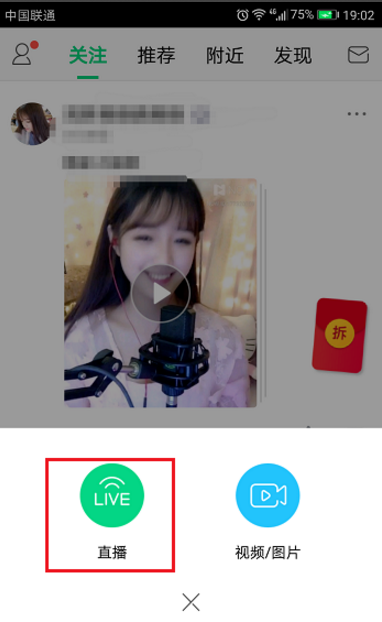 2、点击拍摄图标之后,弹出框点击直播,如下图所示: