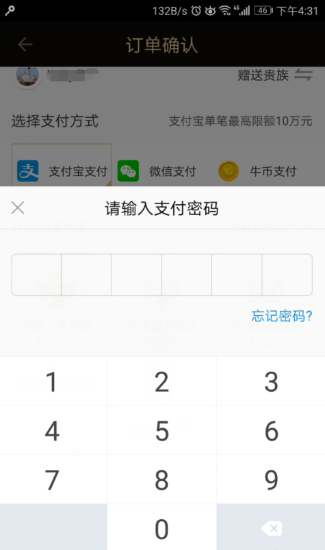 4、然后会弹出订单确认界面,选择支付方式,如图。