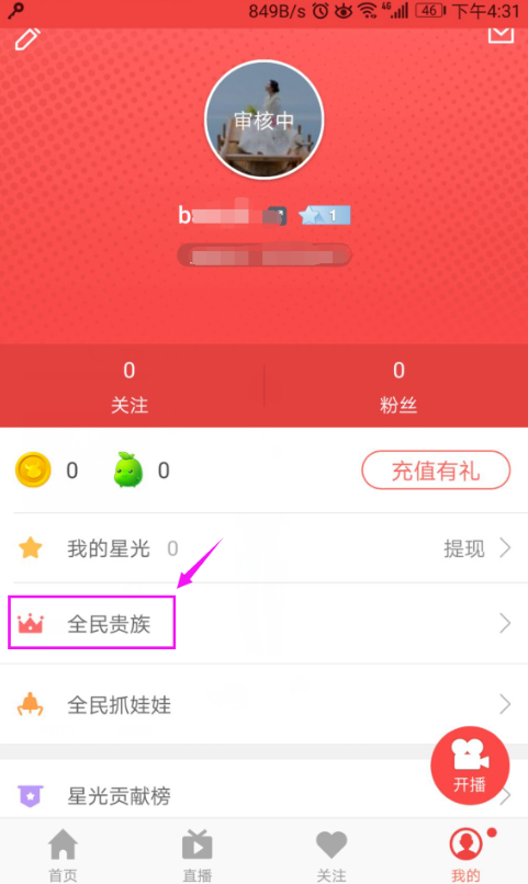 全民直播如何开通贵族标志?