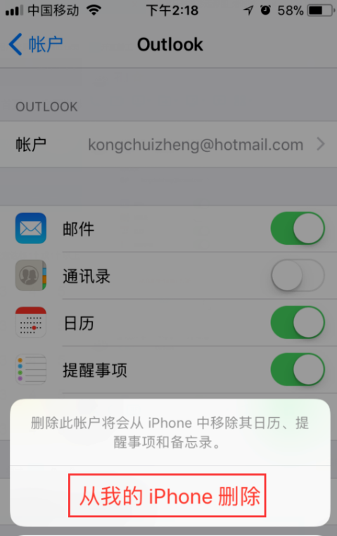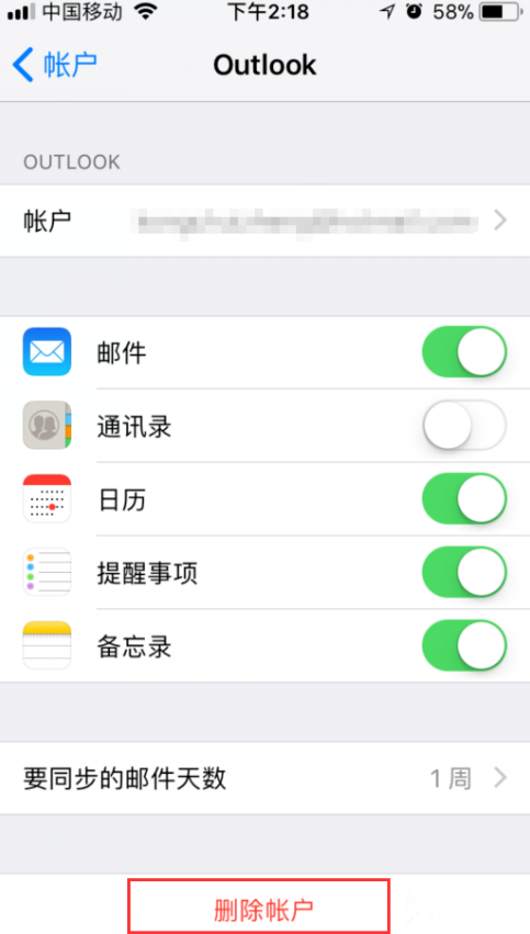 iPhone如何删除邮箱账户?