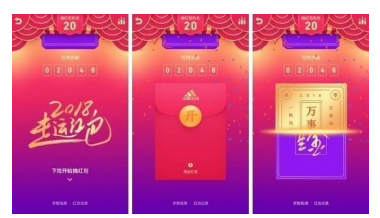 第一是在除夕(2月15日)当天晚上19:00整,手机QQ界面会出现一个挂件,用户可以点击挂件查看去年的运动步数总结,同时也可以抢红包,一直持续到23:00结束。