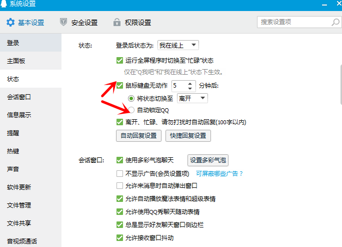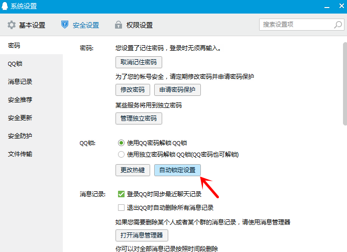 6、这时,我们在出现的页面中设置锁QQ锁的时间及选择“自动锁定QQ”即可;