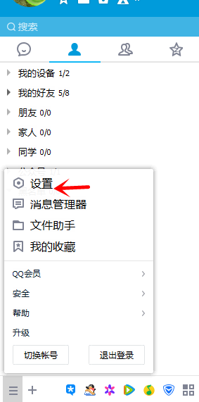 2、在QQ首页中,我们选择并点击该页面左下角的“三杠”图标;