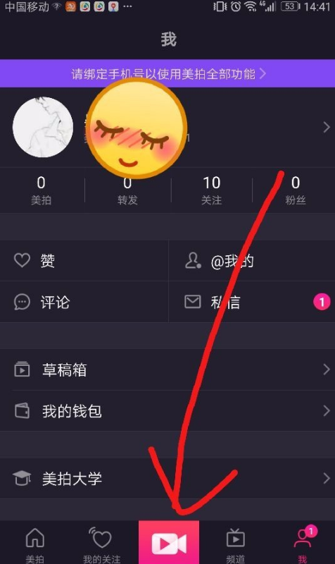 1、打开美拍APP,登录账号,点击页面的拍摄按钮。