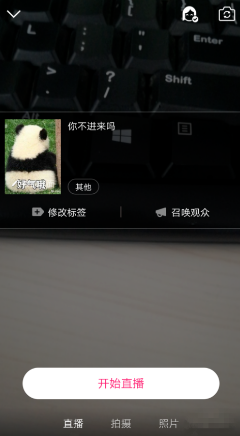 2、选择直播拍摄,然后添加图片、文字,还有标签,就可以开始直播了。