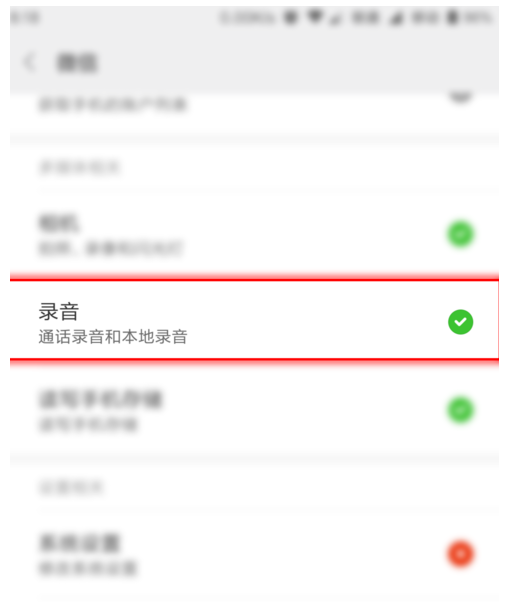 4、然后找到那个【录音】的选项,开启,这样语音就有声音了。