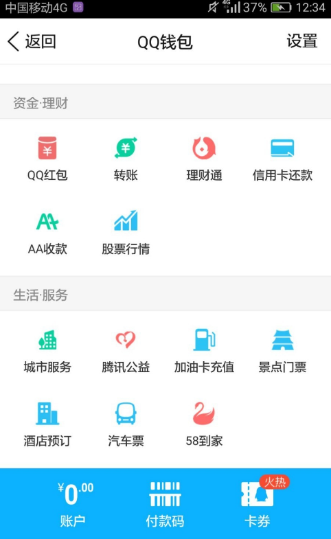 2、点击打开QQ钱包,如下图所示,滑动页面,在页面底端可以直接看到酒店预定的功能选项。