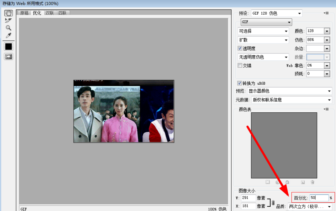 4、右下角百分比设置成50%或更小,这个数值自己调整,点存储,