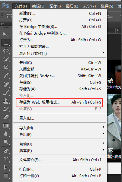 3、点击右上角文件-存储为web所用格式,