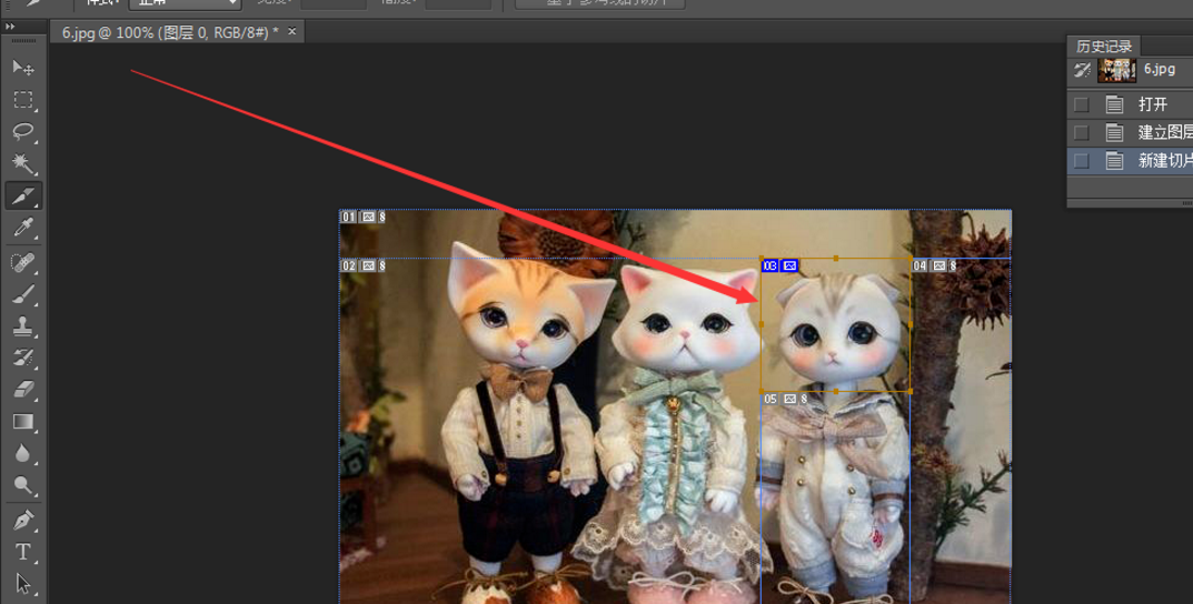 3、找到右边工具栏,里面有切片工具,如下图位置,
