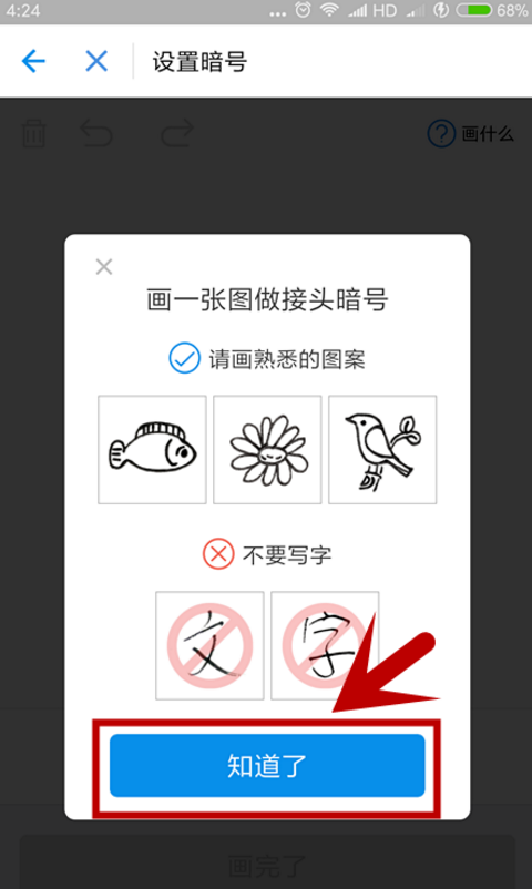 4、根据自己的喜好选择拍图或画图作暗号,以画图作暗号为例。