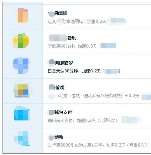 6、还可通过勋章墙、听歌、游戏等方式,获得额外加速累计。