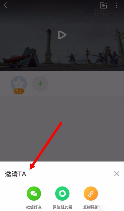 4、我们点击邀请好友进入影吧,分享影吧给自己的好友,让他们和你一起观看电视电影,如下图。