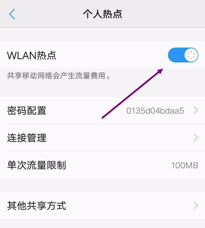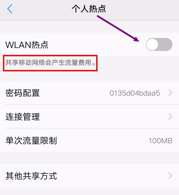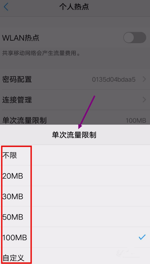 3、在个人热点处可以设置一些权限,比如热点的连接数量、单次的消耗流量,这样才能保证热点被自己利用,而且不超出自己的套餐流量。