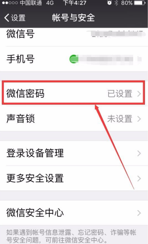 3、你将会看到一个微信密码,点击它。