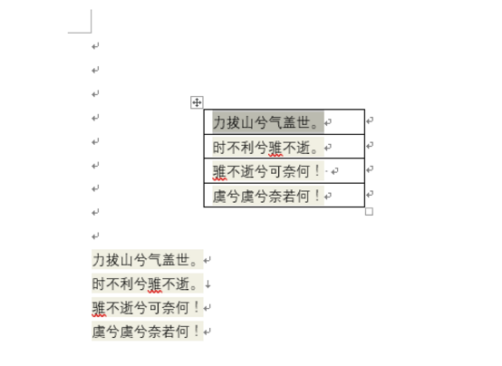 2、因为是逐个粘贴,文本自然没有边框,将表格中内容提取出来,需要重复多次,这个方法虽然简单,但如果内容较多就会浪费时间。